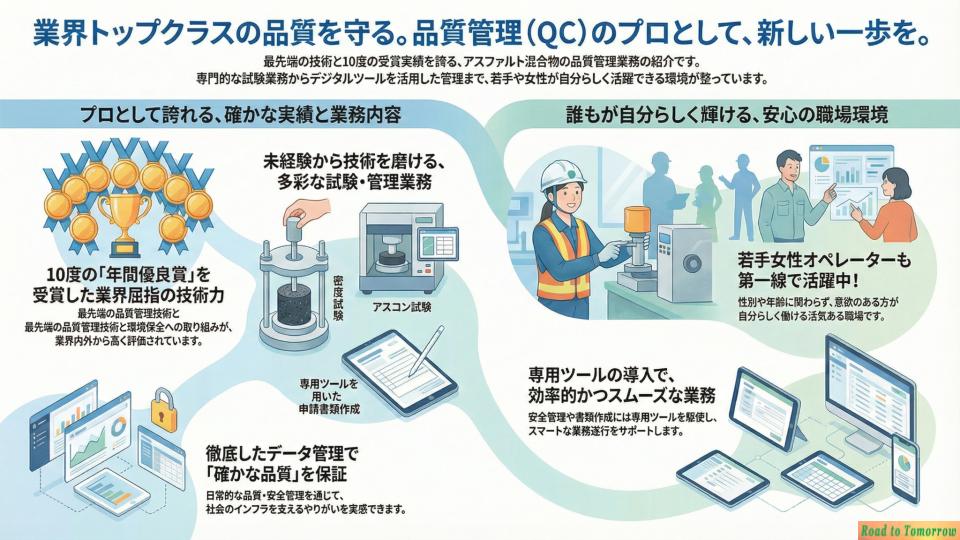 A. 舗装工・切削工・産廃工場スタッフ・事務職は、事業拡大につき積極採用を行っています。